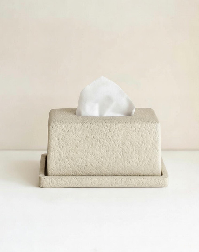 جا دستمالی مینیمال مدرن دو تیکه رنگ کرم استخوانی کد ۱۰۱۷