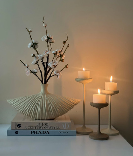 گلدان پینترستی همراه شمعدان های مینیمال مدرن رنگ کرم کد ۲۳۳۴