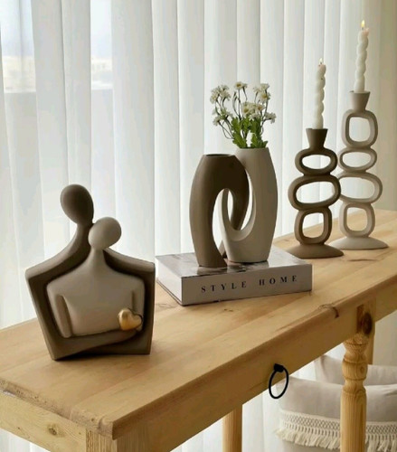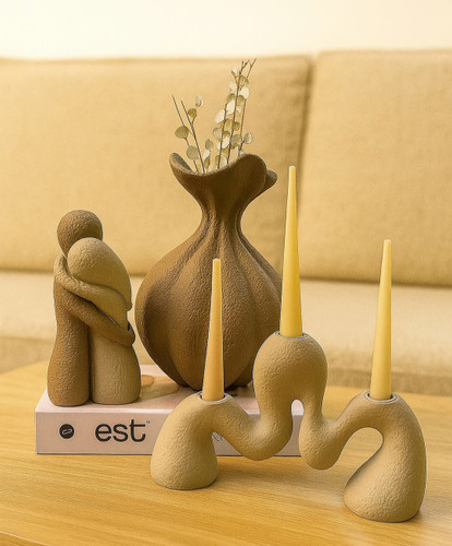 ست سه تیکه گلدان جفتی مدرن همراه مجسمه آغوش و شمعدان مدرن کد ۱۹۱۵