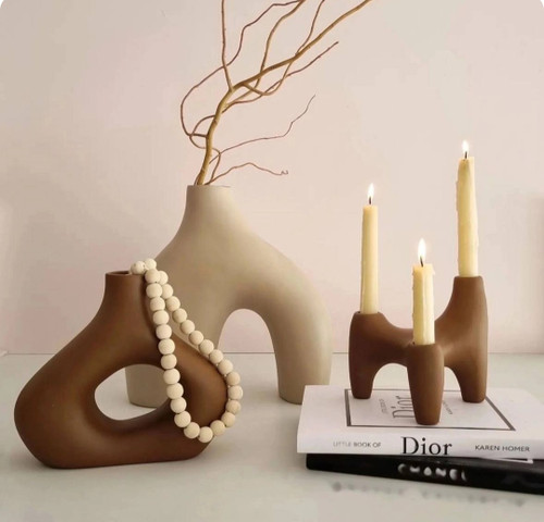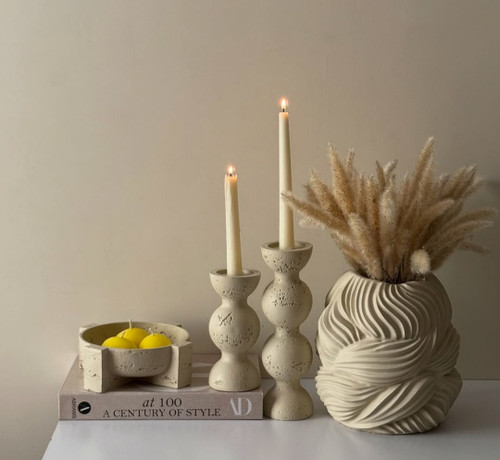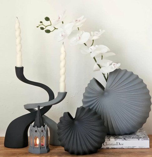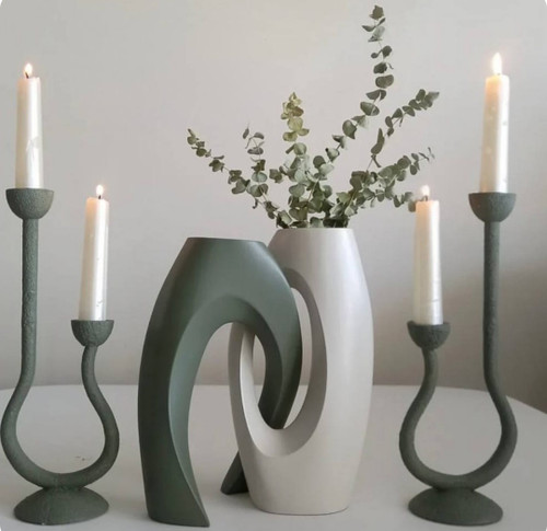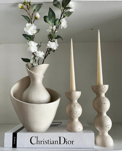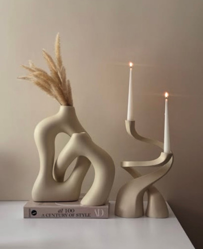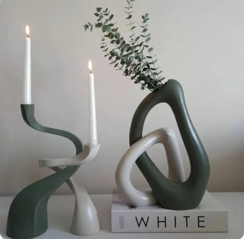 ست جاشمعی مدل پیچک و گلدان رومیزی مدل دفرمه مینیمال کد ۲۲۱۵