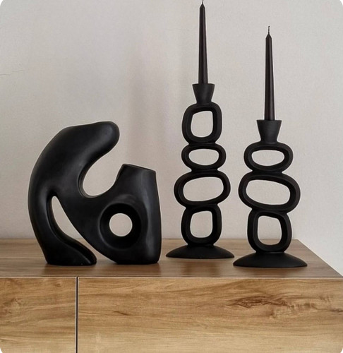 ست گلدان جفتی توهم و جاشمعی مینیمال رومیزی مشکی مات کد ۲۴۶
