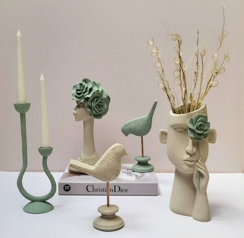 ست گلدان احساس همراه جاشمعی و مجسمه دختر آفریقایی و استند کبوتر کد ۱۸۰۶