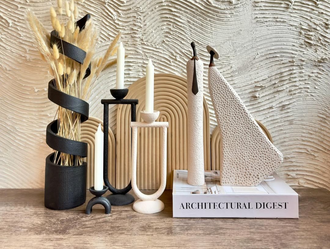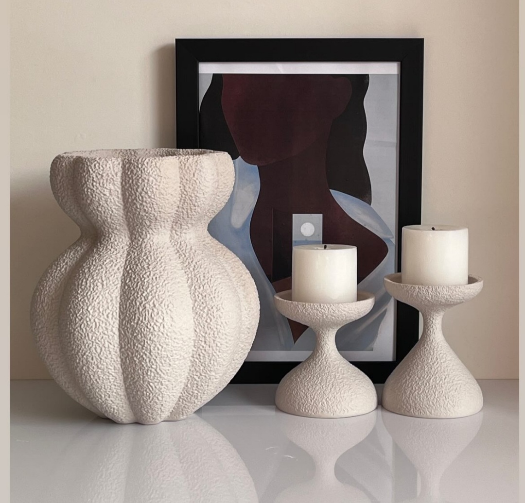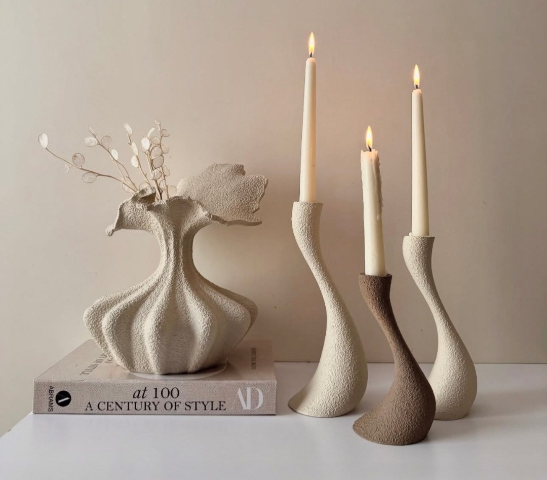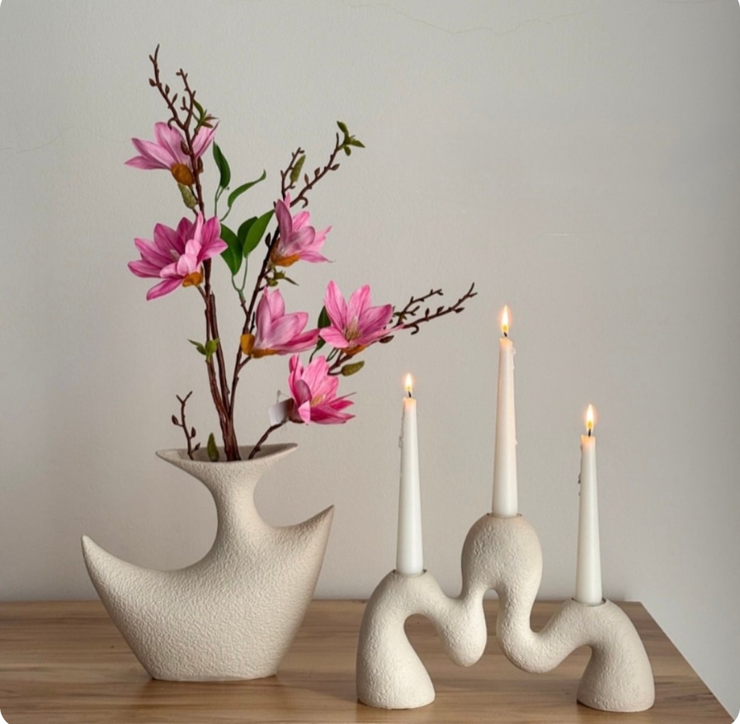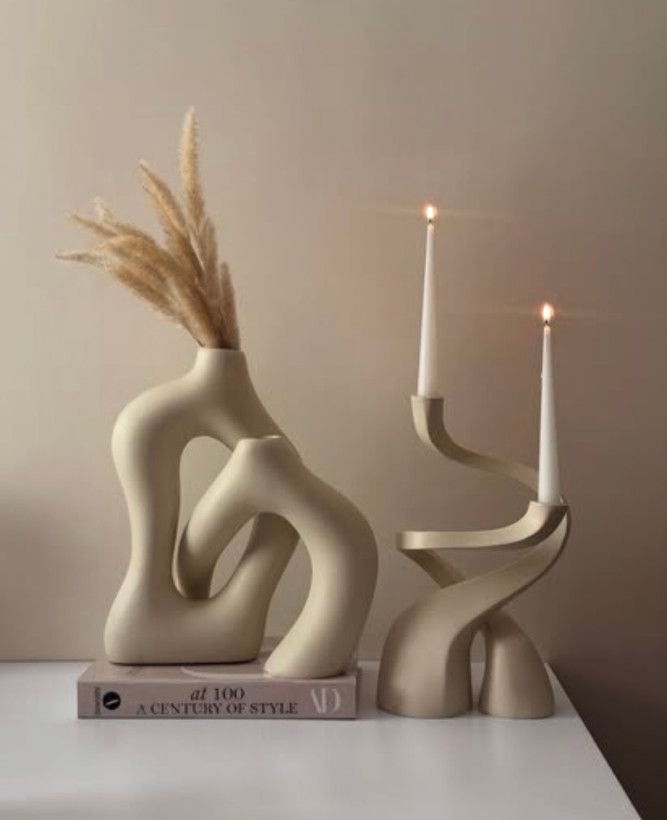 ست جاشمعی مدل پیچک و گلدان رومیزی مدل دفرمه مینیمال کد ۲۲۱۵
