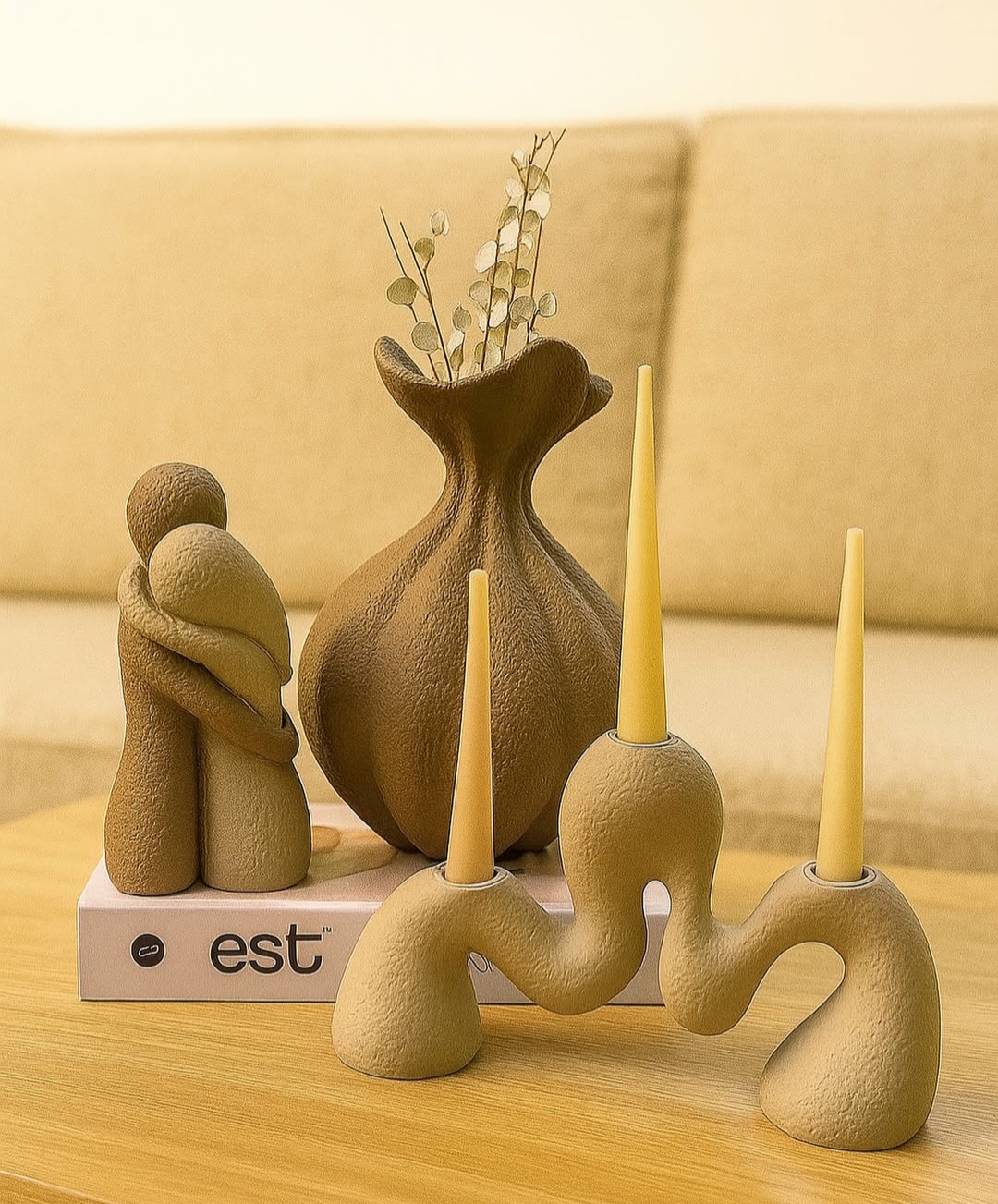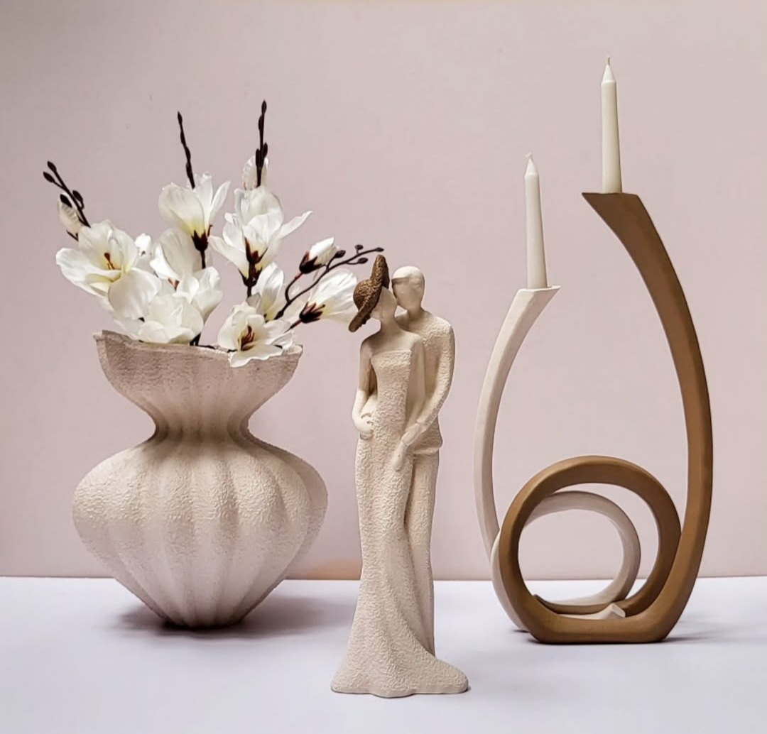 تندیس ماه عسل همراه گلدان جفتی و شمعدان مدرن کد ۲۱۱۰