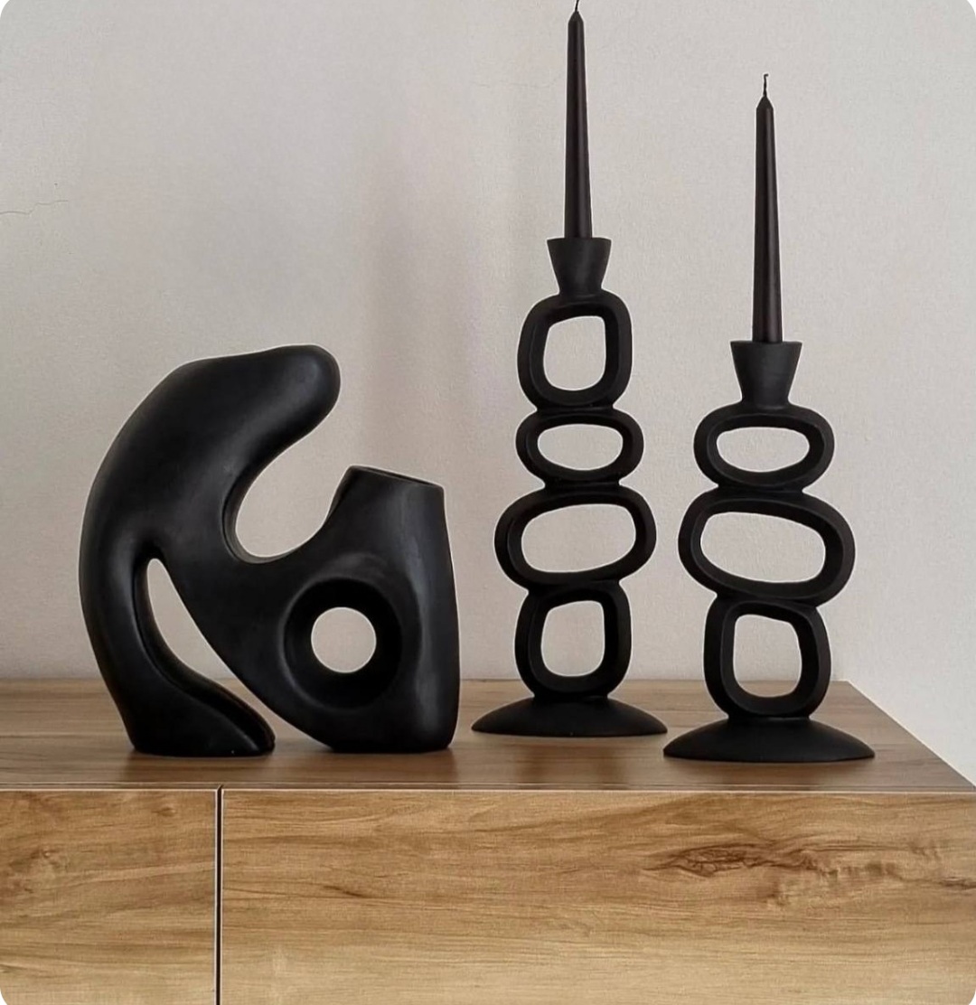 ست گلدان جفتی توهم و جاشمعی مینیمال رومیزی مشکی مات کد ۲۴۶