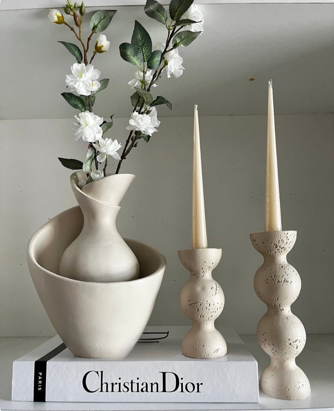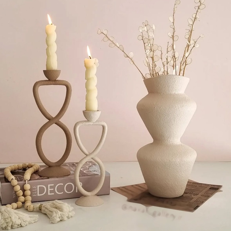 گلدان پینترستی همراه شمعدان های مینیمال مدرن رنگ کرم کد ۲۳۳۴