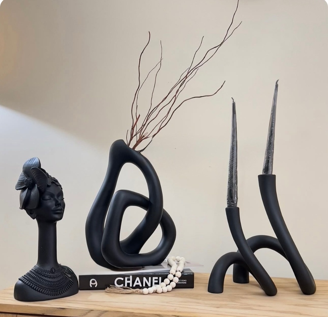 گلدان رومیزی مدل احساس همراه مجسمه دختر آفریقایی و شمعدان های جفتی و استند پروانه کد ۱۸۴۷