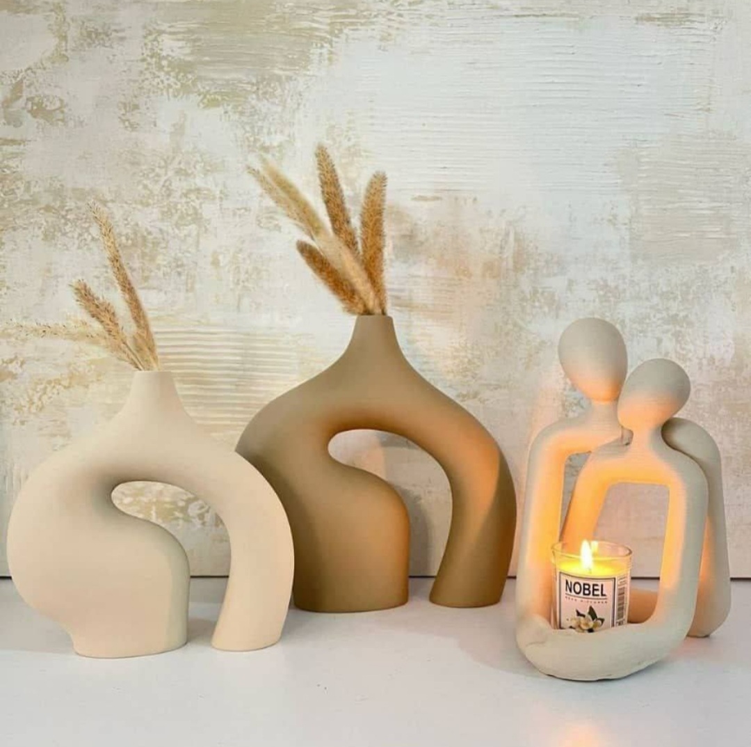 ست سه تیکه گلدان جفتی مدرن همراه مجسمه آغوش و شمعدان مدرن کد ۱۹۱۵
