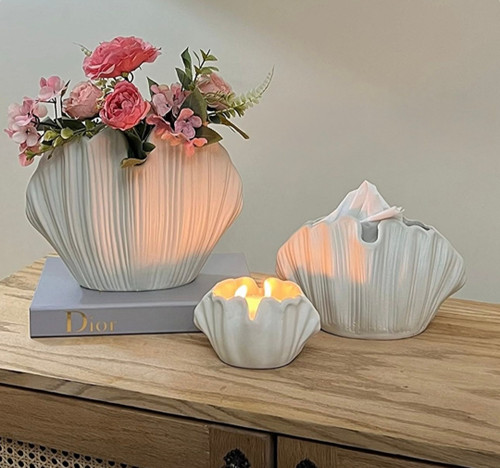ست گلدان رومیزی و جادستمال کاغذی و جاشمعی پودری مدل صدف کد ۲۱۳۳