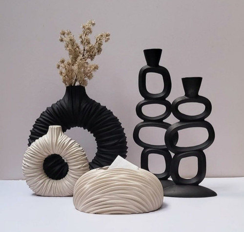 ست گلدان و جادستمالی همراه دو مدل جاشمعی مشکی کد ۱۰۱۷