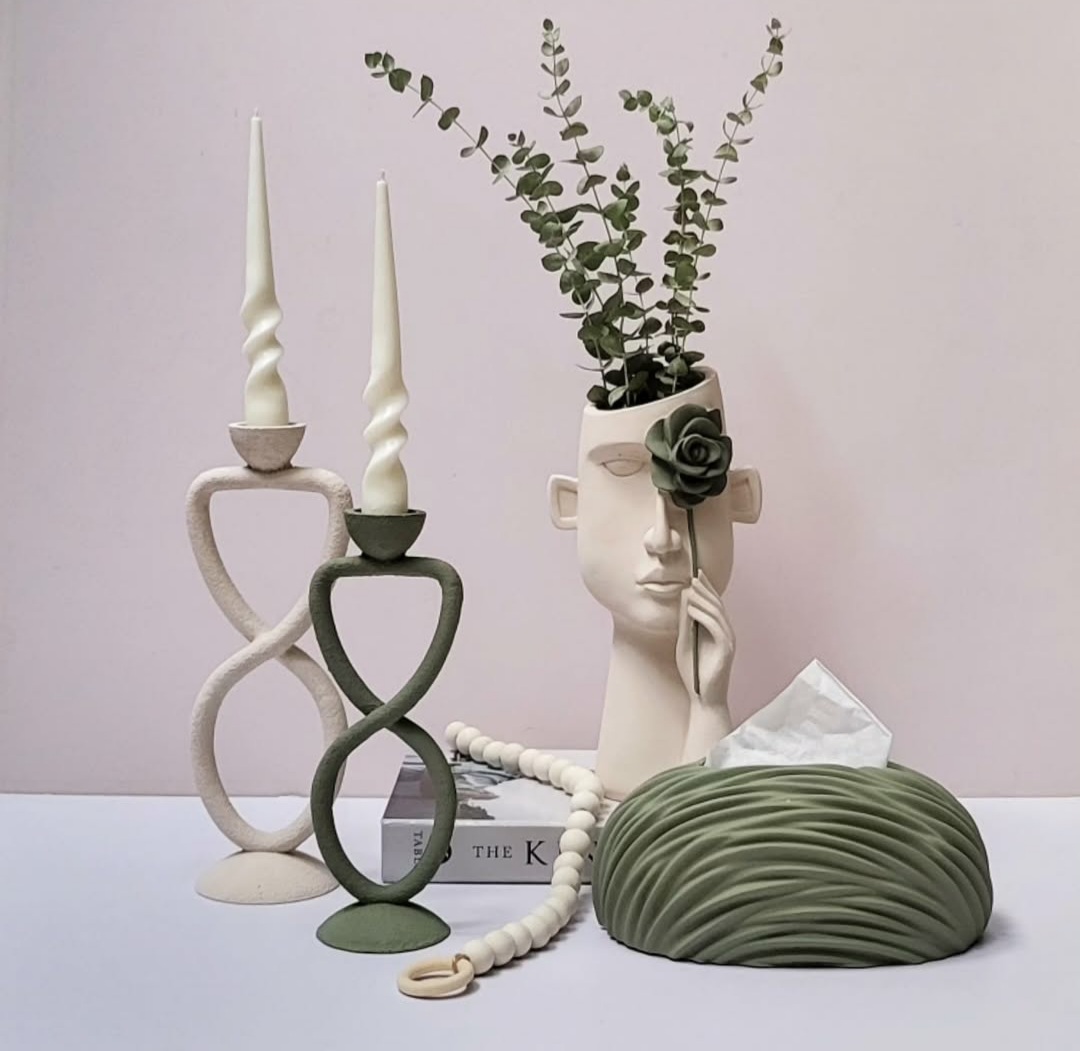 ست گلدان همراه جا دستمالی مدل گره و شمعدان مینیمال کد ۱۴۲۲