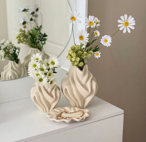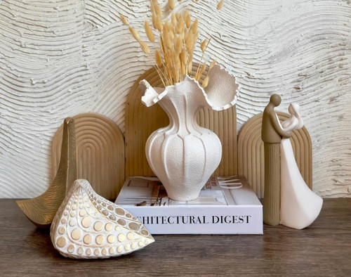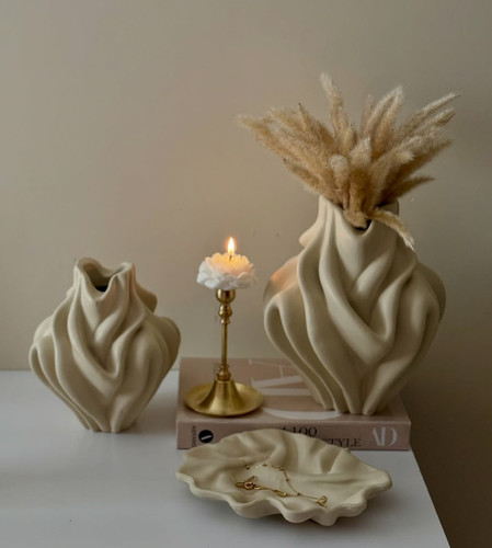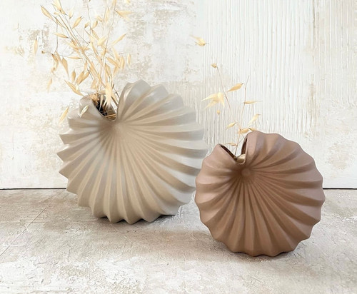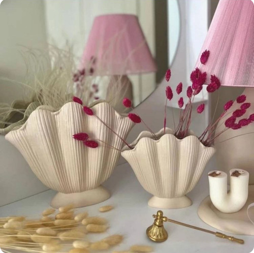 گلدان رومیزی مدل صدف دو سایز همراه هم رنگ کرم کد ۲۳۳۴
