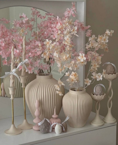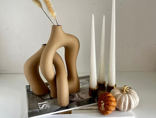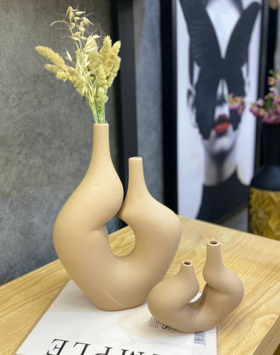 گلدان دفرمه مدل ساناز همراه مجسمه های آهو رنگ کرم قهوه ای روشن کد ۲۰۳۱