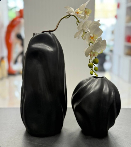 ست گلدان جفتی توهم و جاشمعی مینیمال رومیزی مشکی مات کد ۲۴۶