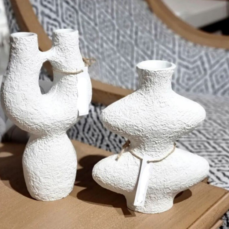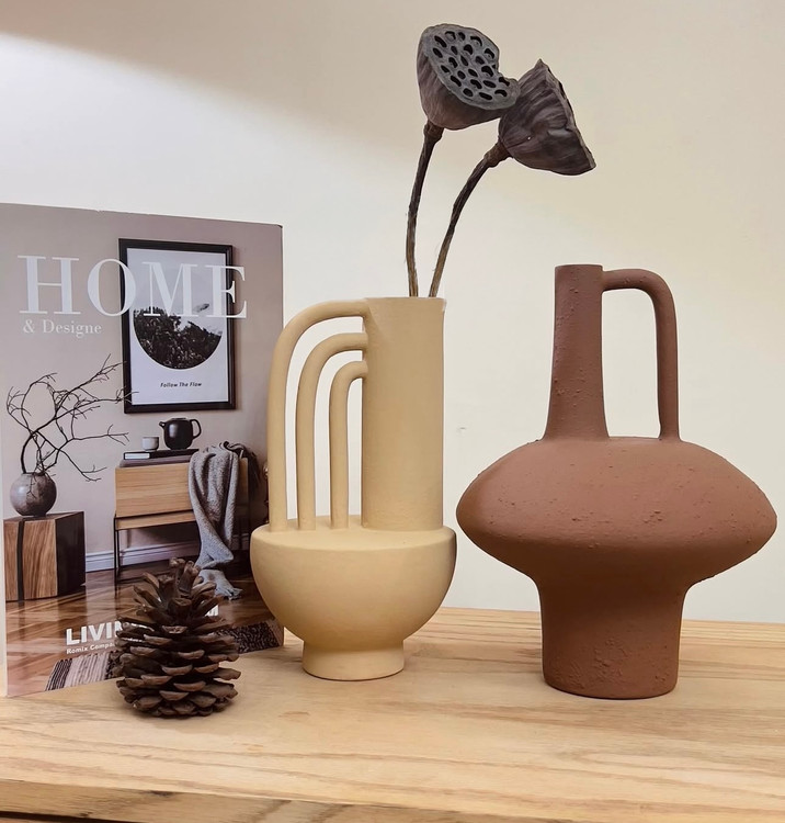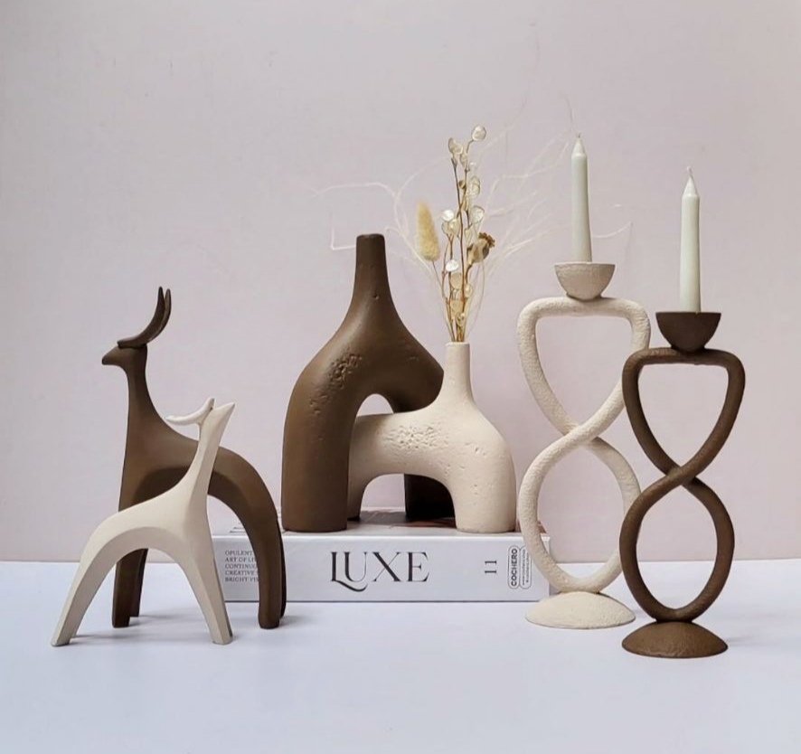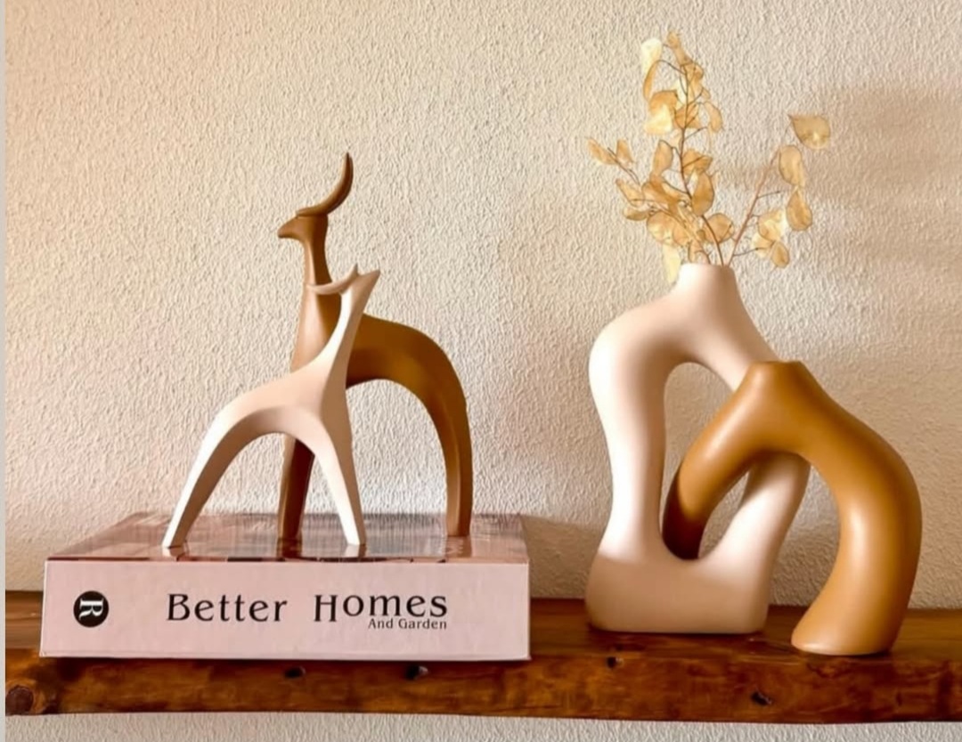 گلدان دفرمه مدل ساناز همراه مجسمه های آهو رنگ کرم قهوه ای روشن کد ۲۰۳۱