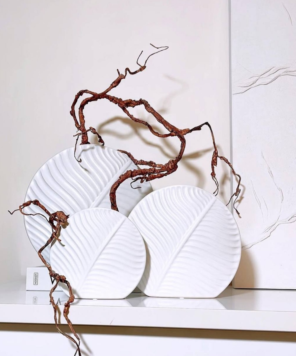 ست گلدان دکوراتیو رومیزی گرد مدل برگ کد ۱۶۴۶