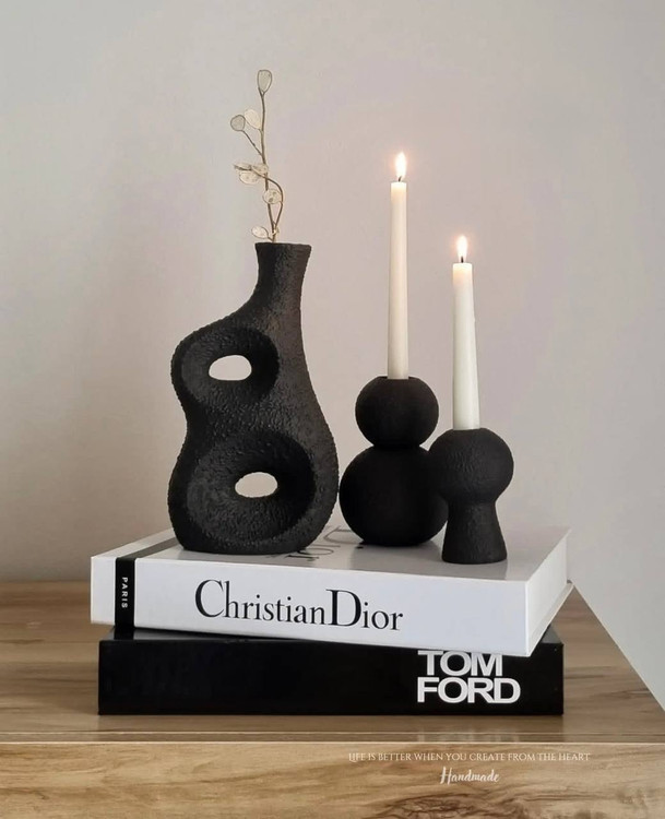 ست گلدان جفتی توهم و جاشمعی مینیمال رومیزی مشکی مات کد ۲۴۶