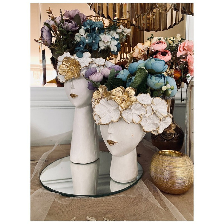 ست گلدان رومیزی دکوراتیو مدل دختر با تاج گل کد ۱۶۴۸