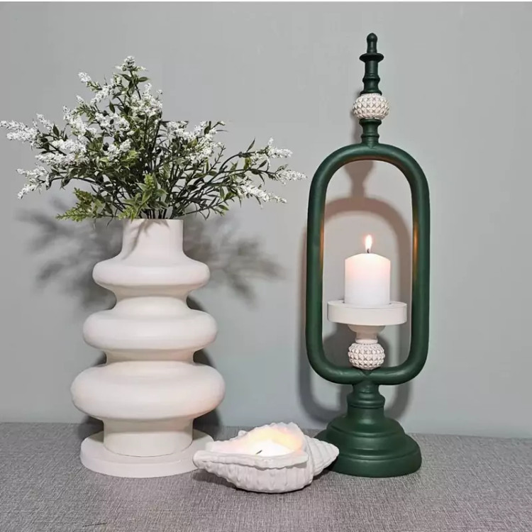 ست گلدان فواره ای همراه جاشمعی مدل فانوس سبز و صدف دریایی کد ۱۲۴۵