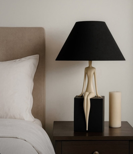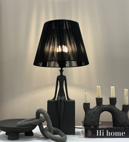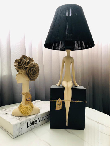 آباژور رومیزی مدل لیدی همراه کلاهک رنگ سفید مشکی کد ۲۱۰۳