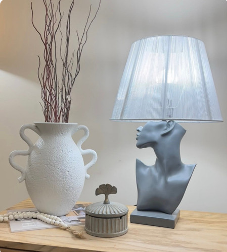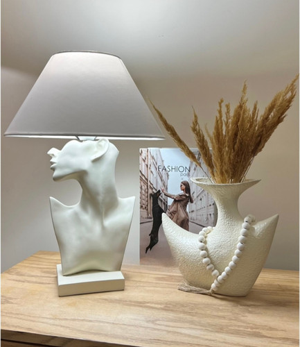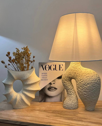 آباژور رومیزی مدل دفرمه تکسچر و گلدان رومیزی طرح صدف رنگ کرم استخونی کد ۲۰۴۷
