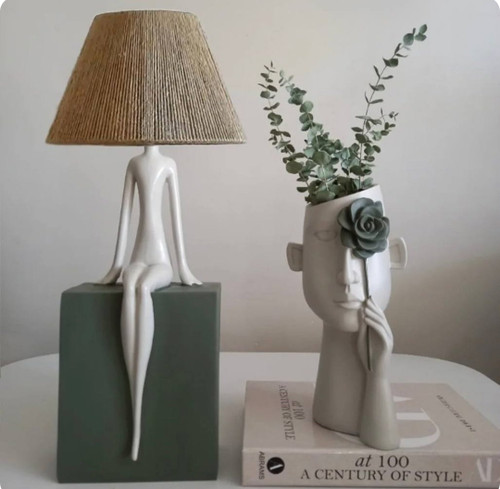 ست آباژور رومیزی مدرن عروسک همراه مجسمه رومیزی ماه عسل رنگ سفید استخونی سبز کد ۲۰۴۴