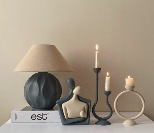 ست رو کنسولی شیک آباژور همراه تندیس آغوش و شمعدان های مینیمال رنگ کرم طوسی تیره کد ۲۲۳۴