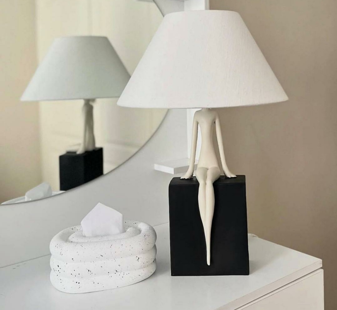 آباژور رومیزی مدل لیدی همراه کلاهک رنگ سفید مشکی کد ۲۱۰۳