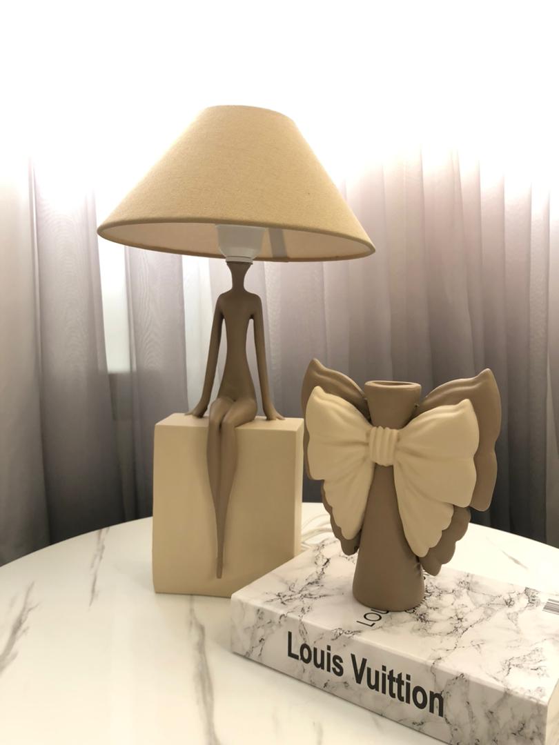آباژور رومیزی آغوش همراه گلدان آزادی بلند رنگ کرم و نسکافه ای روشن کد ۲۳۲۳