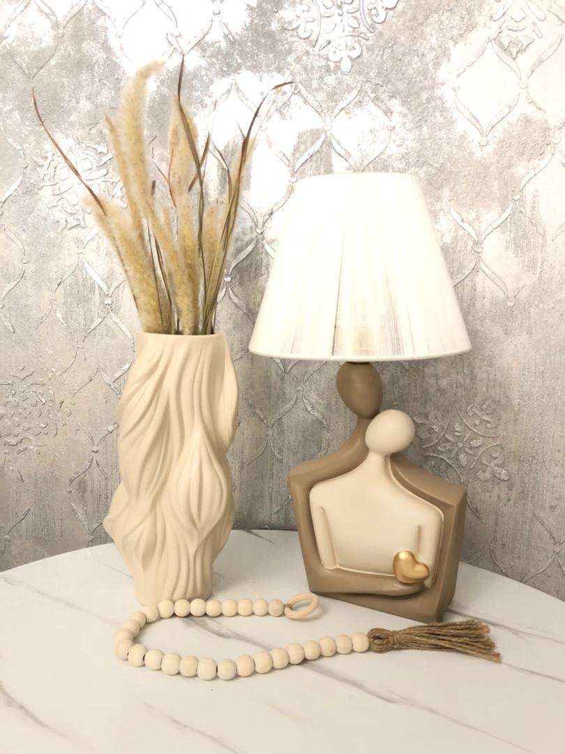 آباژور رومیزی مدل دفرمه تکسچر و گلدان رومیزی طرح صدف رنگ کرم استخونی کد ۲۰۴۷