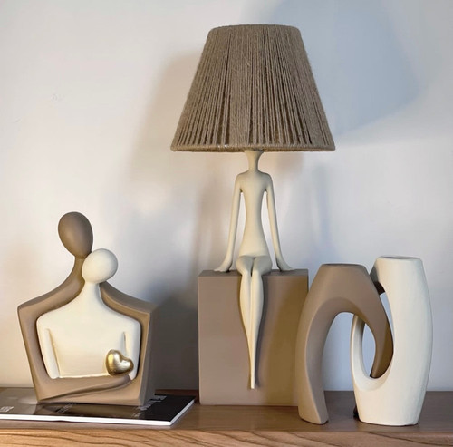 ست رومیزی دکوراتیو گلدان ، جاشمعی و مجسمه زوج رنگ کرم نسکافه ای کد ۱۸۲۹