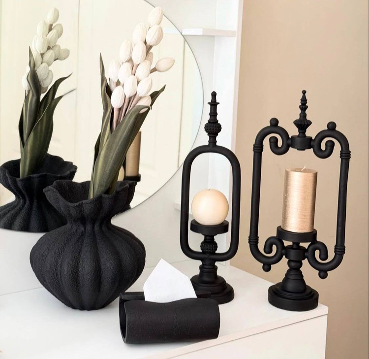 شما میتونید بجز رنگ مشکی داخل عکس متناسب با فضای منزل رنگ جا شمعی خودتون شخصی سازی کنید و انتخاب کنید .