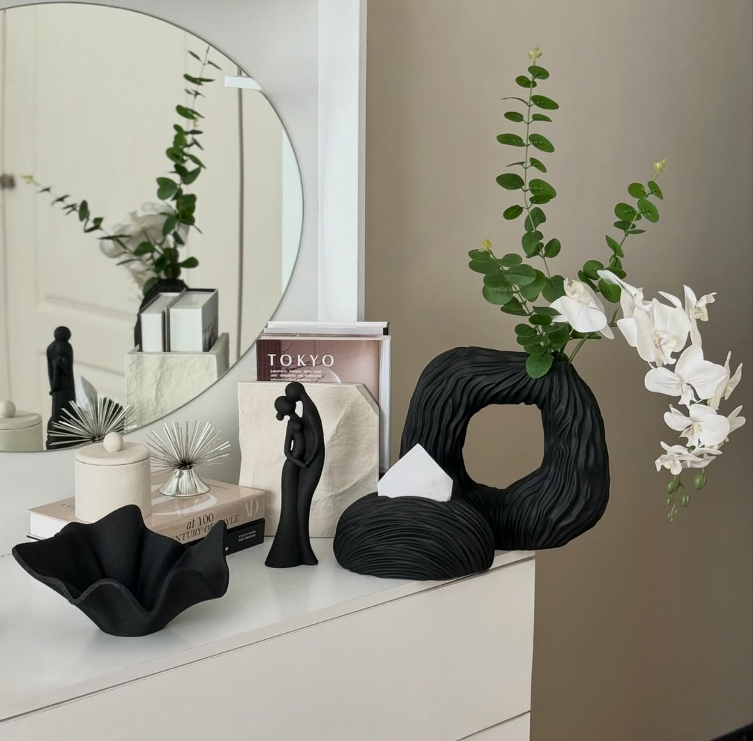 اینم ست شیاردار همراه جا دستمالی و جدیدترین مجسمه زوج که موجود کردیم به رنگ مشکی تقدیم شما 👌
