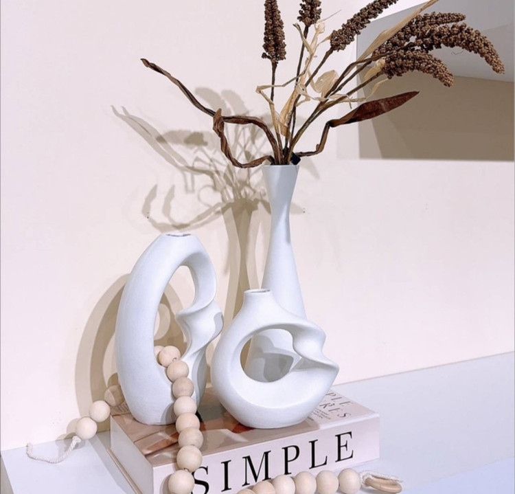 این ست شامل دو عدد گلدان پیچک یک عدد گلدان مخروطی همراه کتاب دکوراتیو و ریسه مهره چوبی هست.