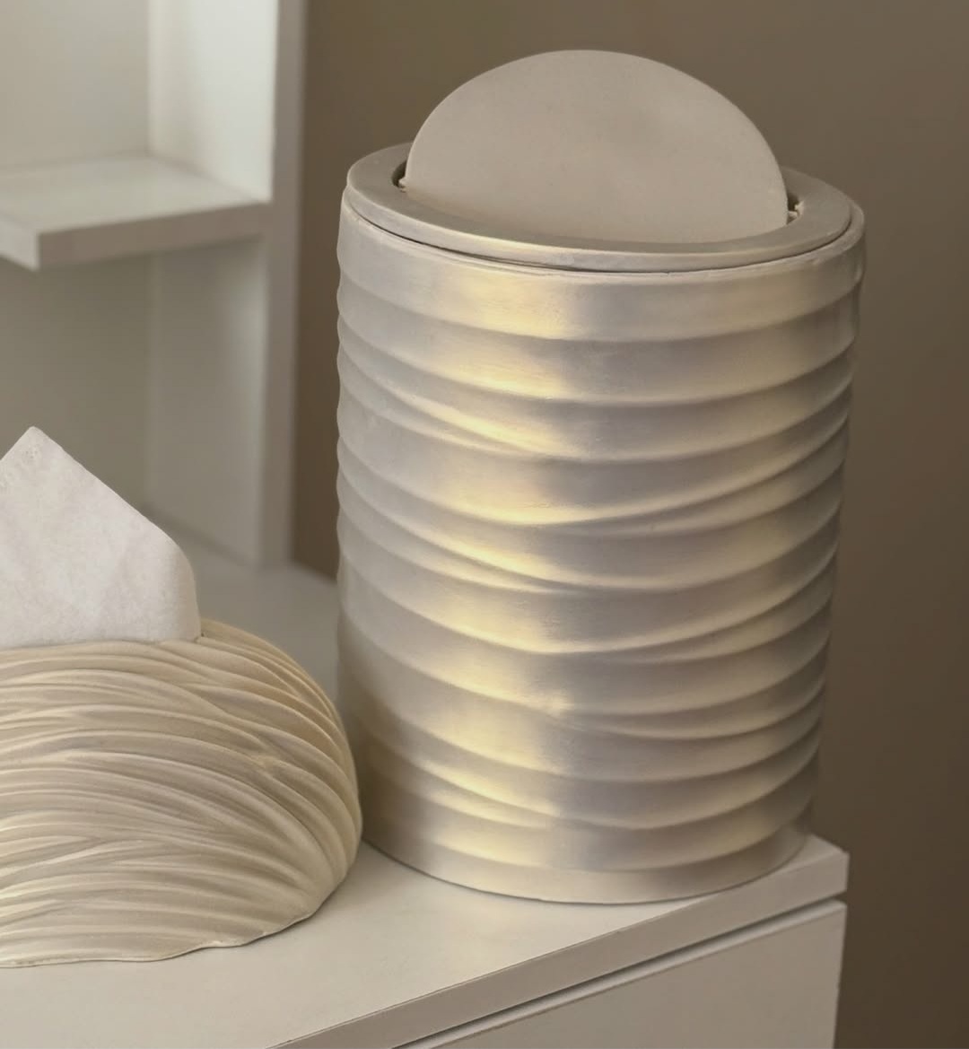 مشخصات اصلیرنگ / صدفی هفت رنگمشخصات فرعیجنسپلی استرابعاد سطل۱۸*۲۵ سانتی مترابعاد جا دستمالی۱۵*۲۲ سانتی متر