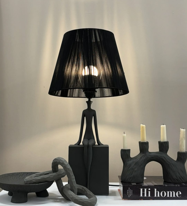 آباژور نیلی همراه شمعدان مدرن و ظرف و زنجیر مشکی مات کد ۲۰۰۷