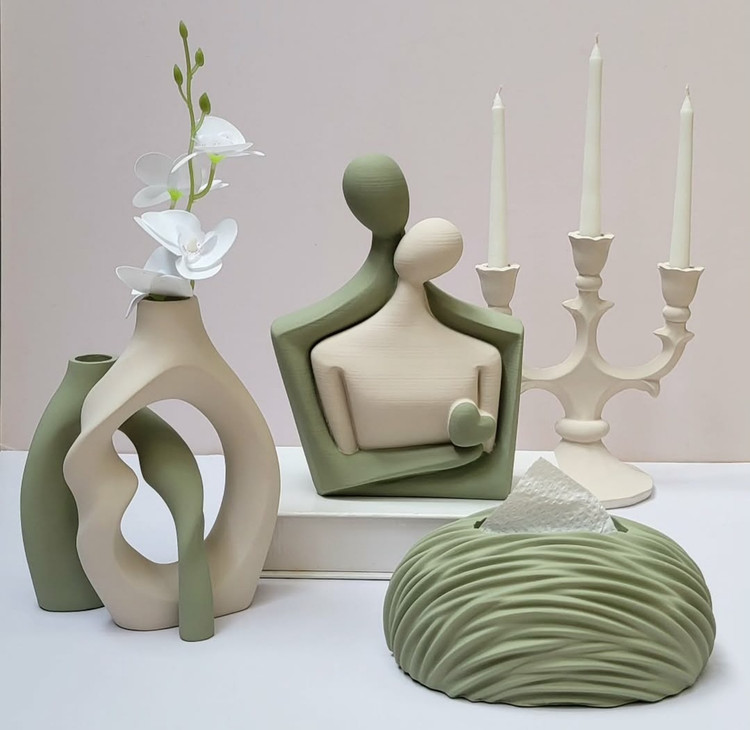 گلدان جفتی ، مجسمه زوج ، شمعدان سه شعله و جا دستمالی شیاردار کد ۱۳۳۸