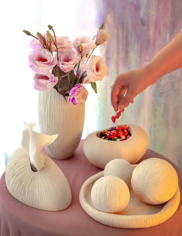 گلدان مدرن و جا دستمالی همراه ظرف و گوی ها کد ۲۰۲۵