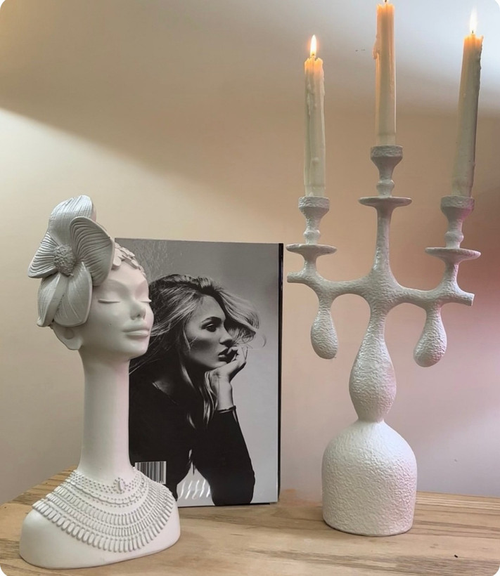 ست شمعدان سه شعله رومیزی مدل تکسچر همراه مجطمه دختر آفریقایی کد ۱۶۵۵