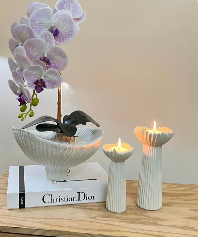 ست شمعدان رومیزی مدل قارچی شیاردار و گلدان رومیزی مدل پایه دار کد ۰۲۰۲