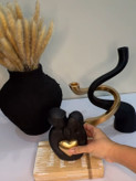 شمعدان مدل پیچ همراه مجسمه زوج قلبی مشکی طلایی کد ۲۰۴۴