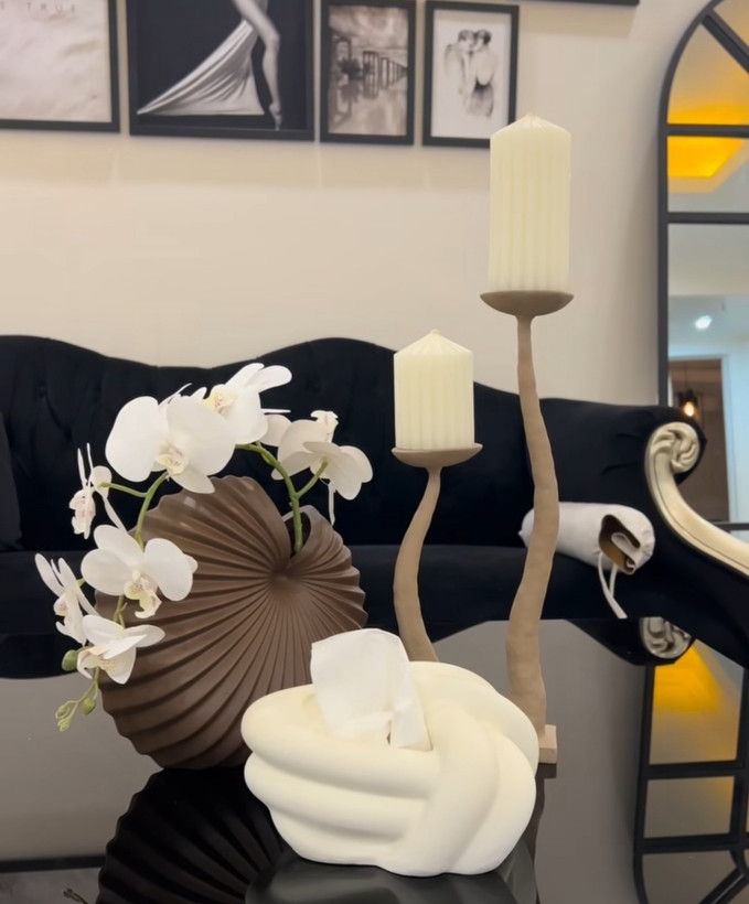 ست گلدان همراه جا دستمالی مدل گره و شمعدان مینیمال کد ۱۴۲۲