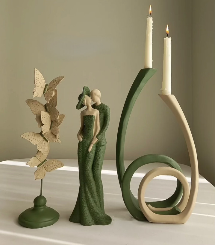 ست مجسمه شمعدان مدل فنر و استند پروانه رنگ کرم سبز کد ۱۴۲۴