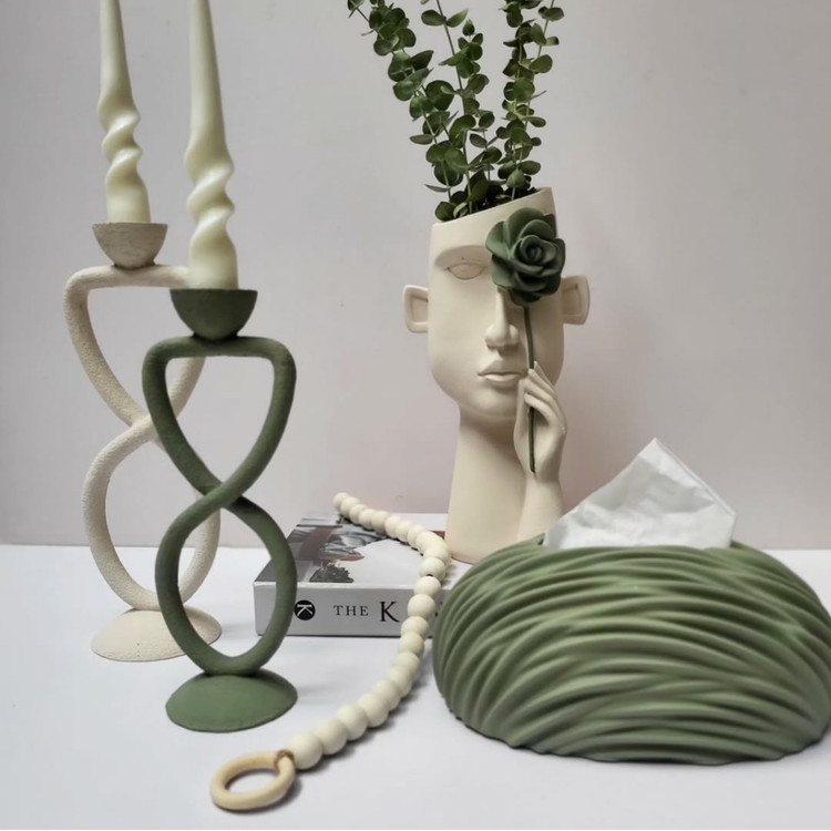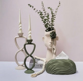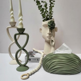 ست کامل گلدان رخ ، شمعدان جفتی ، جادستمالی مدل شیاردار همراه کتاب دکوراتیو و ریسه چوبی رنگ کرم سبز کد ۱۷۰۸