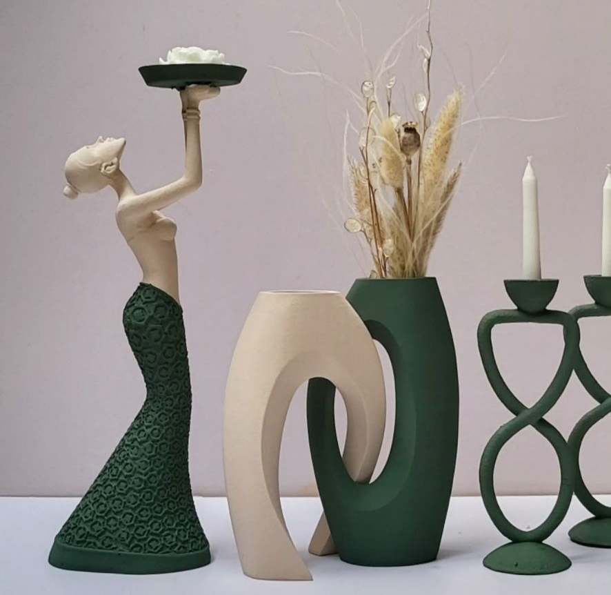 ست گلدان توهم و جاشمعی همراه مجسمه لیدی کد ۱۷۳۹