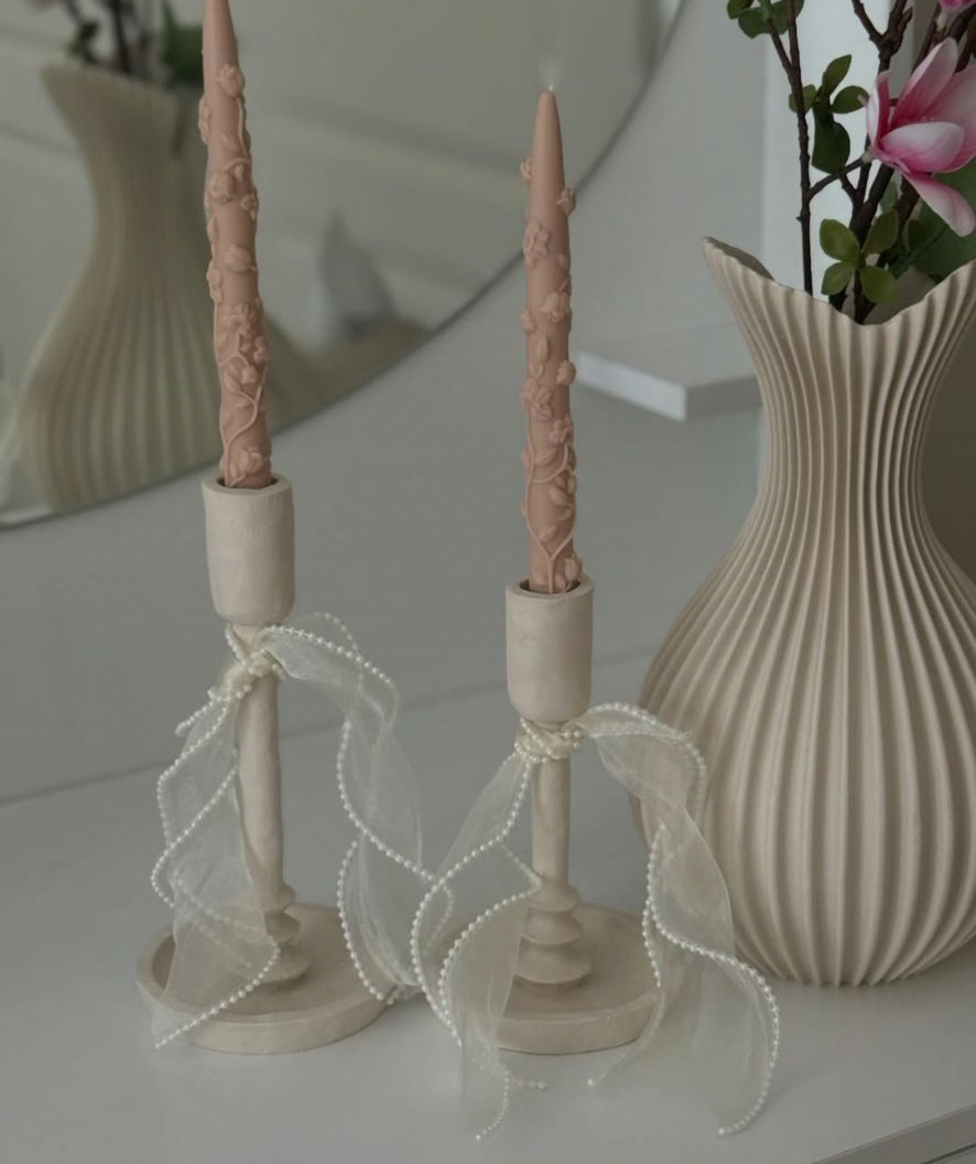 ست گلدان لویا و جادستمالی تکسچر همراه جاشمعی جفتی لویا کد ۱۰۱۰