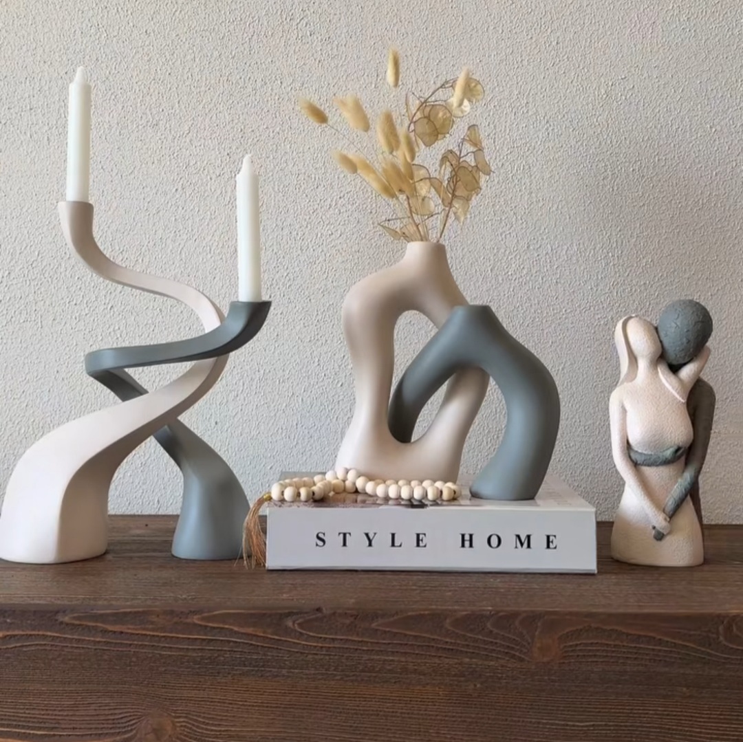 ست سه تیکه گلدان جفتی مدرن همراه مجسمه آغوش و شمعدان مدرن کد ۱۹۱۵